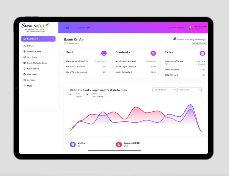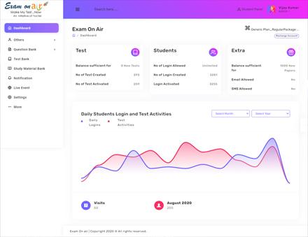 Exam on Air is the most sophisticated, innovative and user friendly online test platform and promises to its clients to help them automate their online examination process completely. From registrations of students to creating test paper for them by uploading of question paper on its own - everything is in the control of our clients
